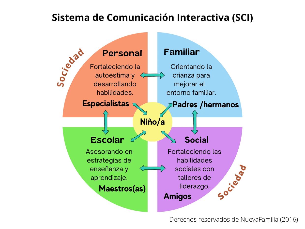 El SCI refleja la comunicación y coordinación constante que debe haber entre los agentes de apoyo: especialistas, padres y maestros; y donde el niño/adolescente es el agente principal de su propia transformación. En el Programa CAD actuamos en todas las areas del desarrollo: personal, familiar, educativo y social.